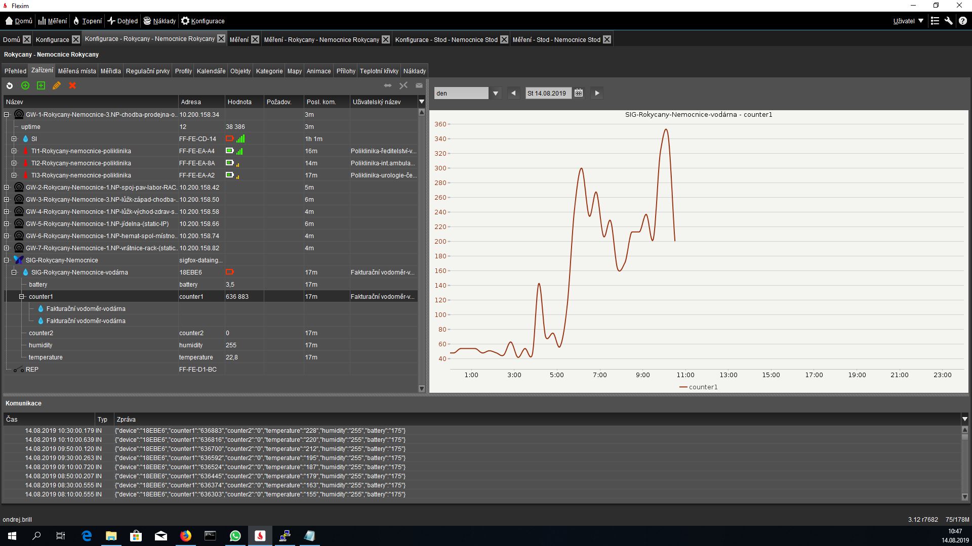 včera od 10:00 se přestal zobrazovat graf vodoměru v uživatelské části Nemocnice Rokycany.