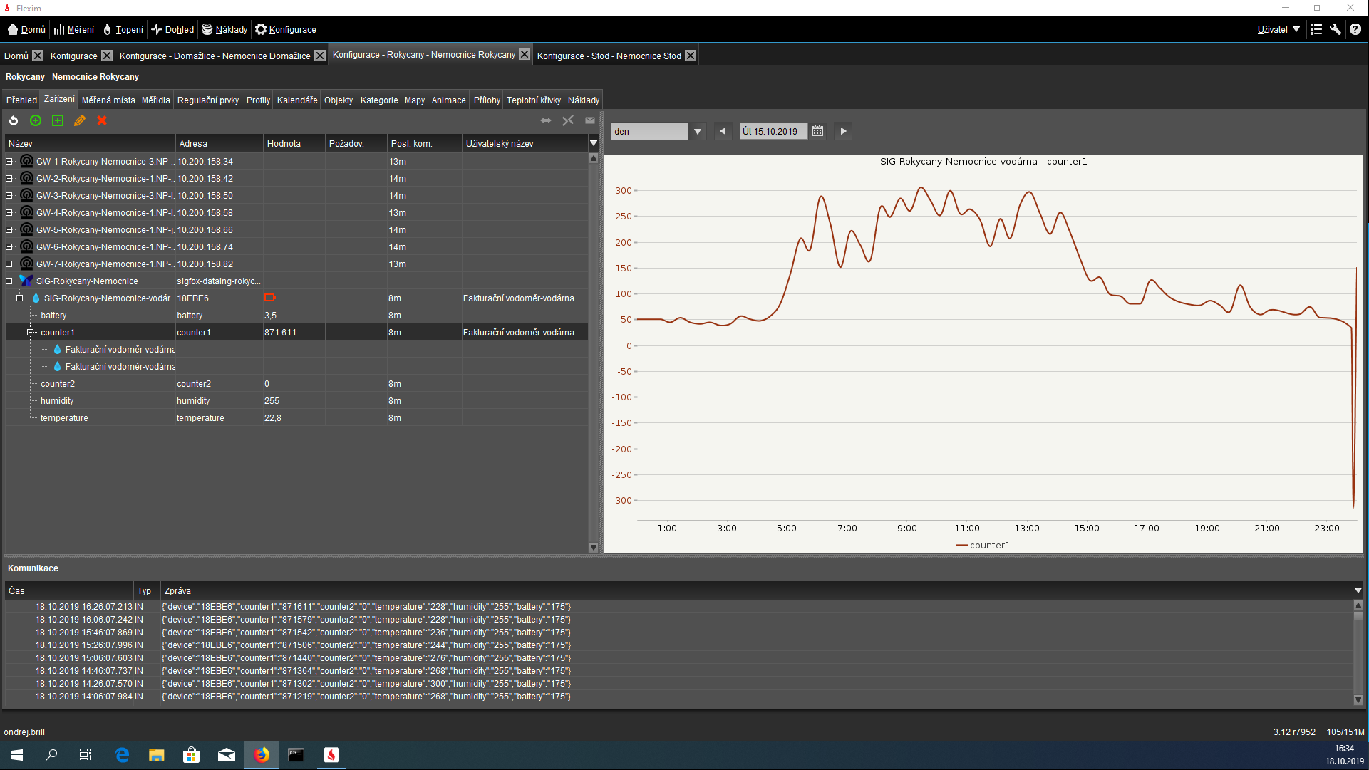 Opůlnoci 15.10.2019 - 16.10.2019 došlo k mínusovému náměru. Dle counterů nastal 2x náměr s podivnou hodnotou ( z desetinou čárkou ), která není možná. Potom již hodonoty counteru chodily normální.