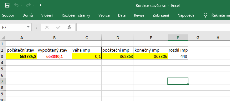 Korigují tak, že odeberu port v měřidlech a znovu přidám se správným stavem, který si dopočtu ( způsob dopočítání viz příloha xls tabulka se vzorcem ).