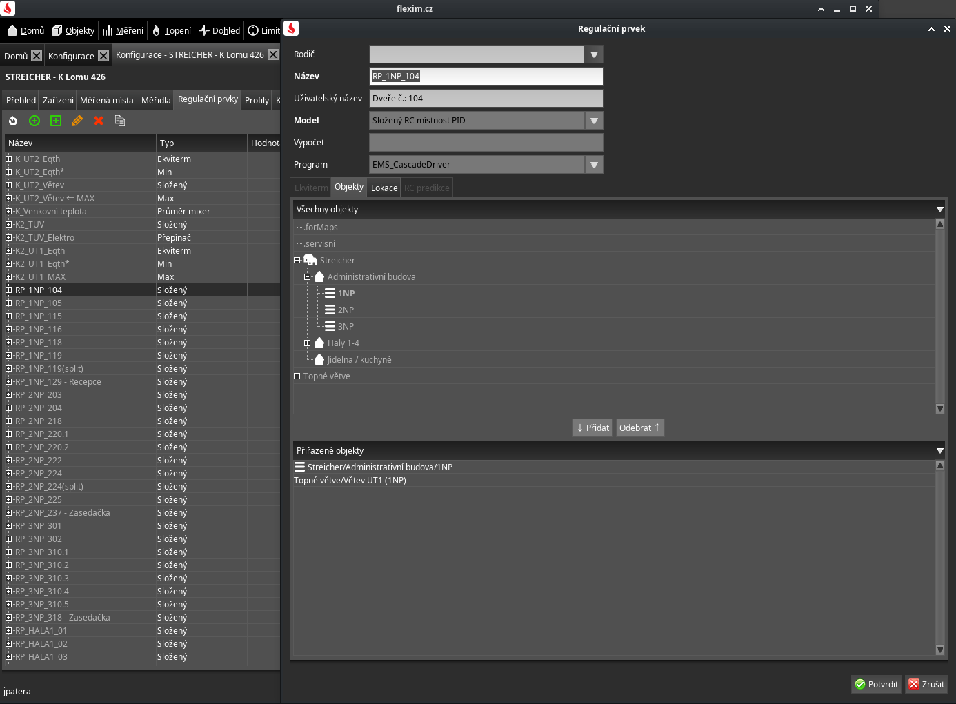 někdo to v minulosti takto z nějakého důvodu zřejmě nastavil. Prvek "Dveře č.: 104" je regulační prvek "RP_1NP_104". V konfiguraci je vidět (viz přiložený snímek obrazovky), že je přiřazen pod dva objekty: